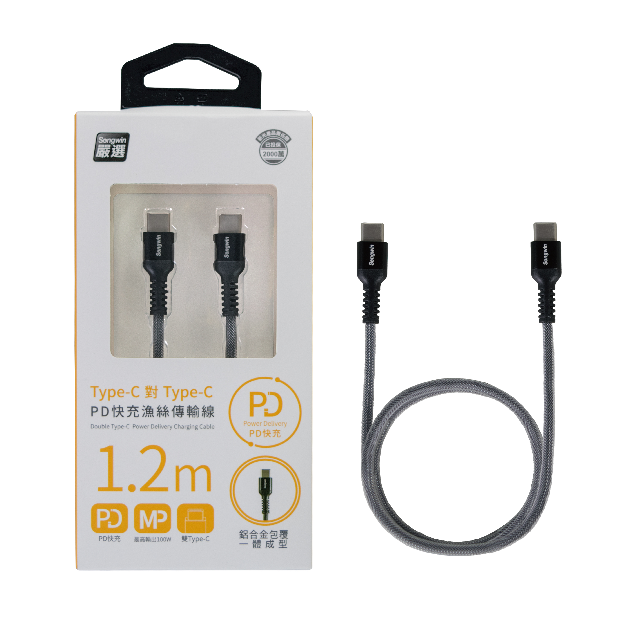 TC-CH Type-C對Type-C PD快充漁絲傳輸線(1.2米)