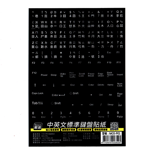 MCK-P01 黑底白字鍵盤貼紙-標準