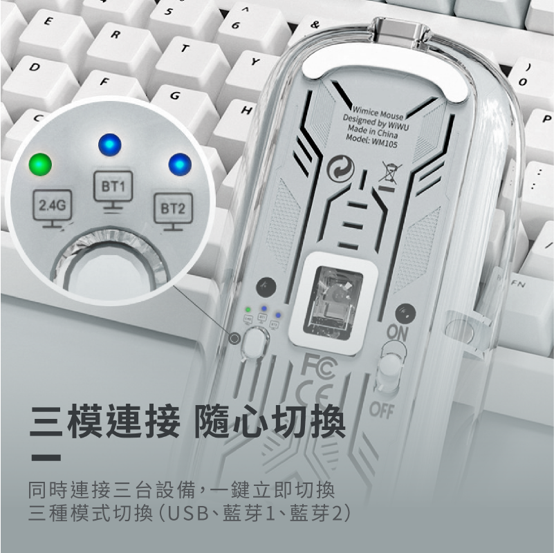 - 透明可拆磁吸上蓋:方便收納USB接收器,保持整潔。