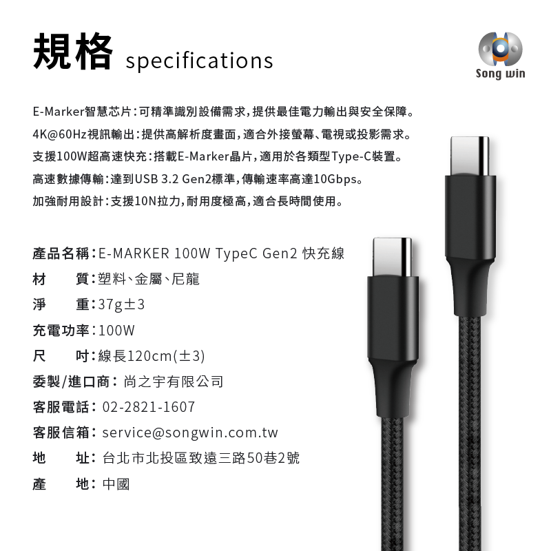 - 支持最大100W功率:這條線支持最高 100W 的充電功率,通常使用 USB Power Delivery (PD) 技術,適用於支持快充的設備,如筆記型電腦、平板電腦和高功率智能手機等。